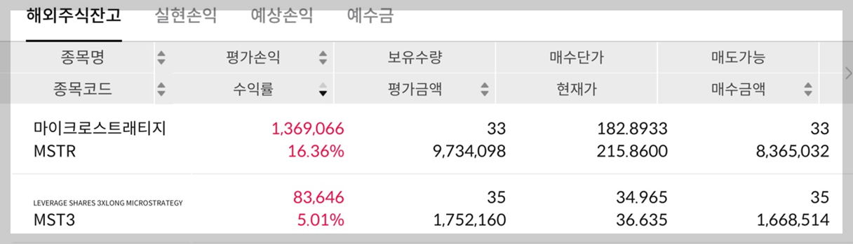 현재 저는 MST3는 35주, MSTR은 33주를 보유하고 있습니다. 앞으로 가격변동시 추가적으로 매매일지를 올리도록 하겠습니다.