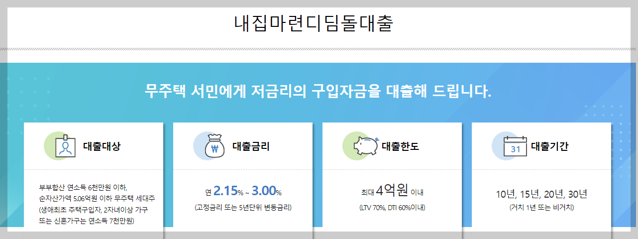 주택도시기금 내집마련 디딤돌대출 자격요건, 상품구조(한도 등), 신청방법,