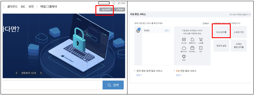 7. 그 후에 DNS 관리툴에 들어갑니다.